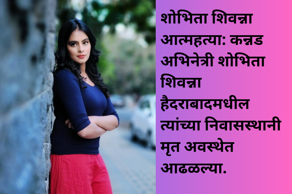 शोभिता शिवन्ना आत्महत्या: कन्नड अभिनेत्री शोभिता शिवन्ना हैदराबादमधील त्यांच्या निवासस्थानी मृत अवस्थेत आढळल्या आहेत. कथितरित्या त्यांनी आत्महत्या केली आहे. टेलिव्हिजन आणि सिनेमा क्षेत्रातील अभिनयासाठी त्या ओळखल्या जात होत्या. ३० वर्षीय शोभिता यांनी कथितपणे काल, म्हणजेच ३० नोव्हेंबरच्या रात्री उशिरा आत्महत्या केली. त्यांच्या मृत्यूची वार्ता कळताच कन्नड सिनेसृष्टीमध्ये आणि त्यांच्या चाहत्यांमध्ये शोककळा पसरली आहे.